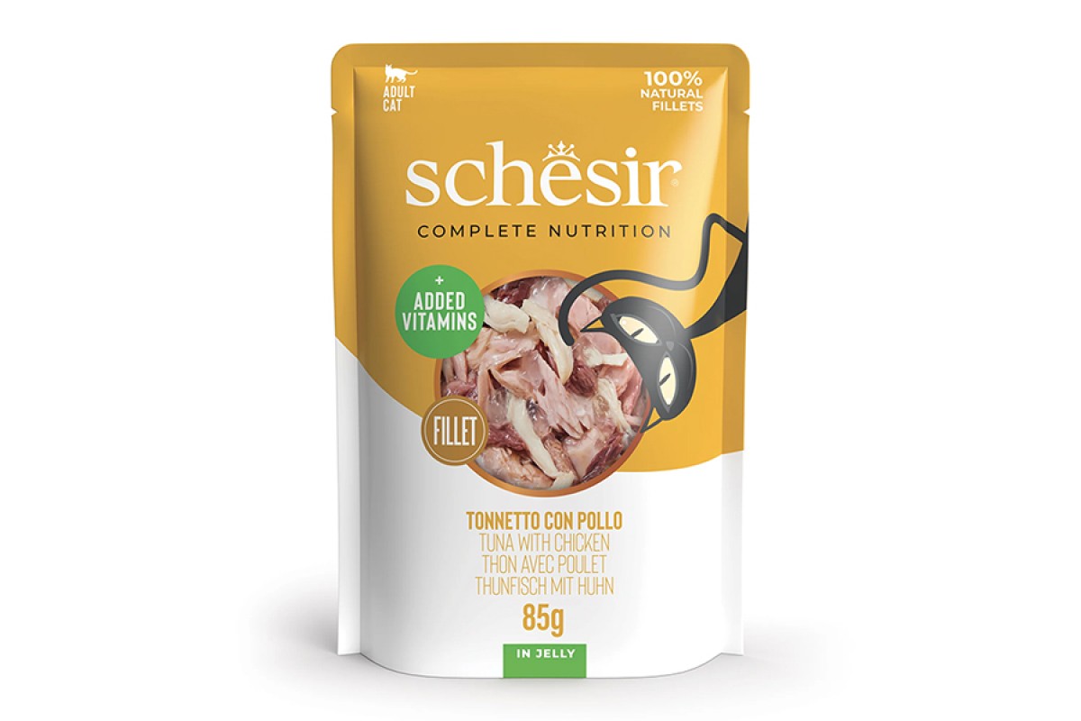 Корм належить до лінійки Schesir Complete Nutrition – серії повнораціонних вологих кормів, розроблених за участю ветеринарних фахівців. Формула підходить для щоденного годування дорослих котів, у тому числі стерилізованих.