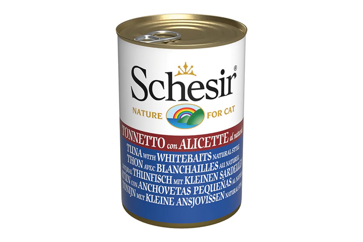 Schesir Tuna with Whitebaits ШЕЗІР ТУНЕЦЬ З АНЧОУСАМИ в бульйоні натуральні консерви для котів, 140г