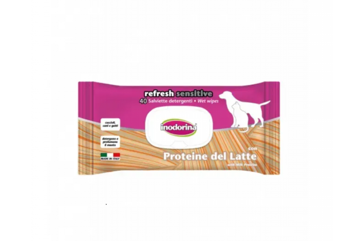 Рецептуру серветок Inodorina Refresh Sensitive підходить для ніжної та схильної до алергії шкіри, а також для цуценят.