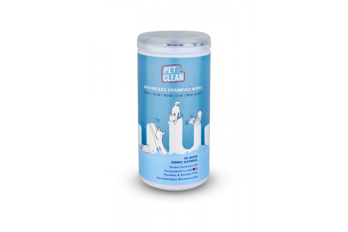 Серветки вологі Pet Clean PET WATERLESS SHAMPOO WIPES швидке очищення складок з медово-вівсяним ароматом 50 шт.