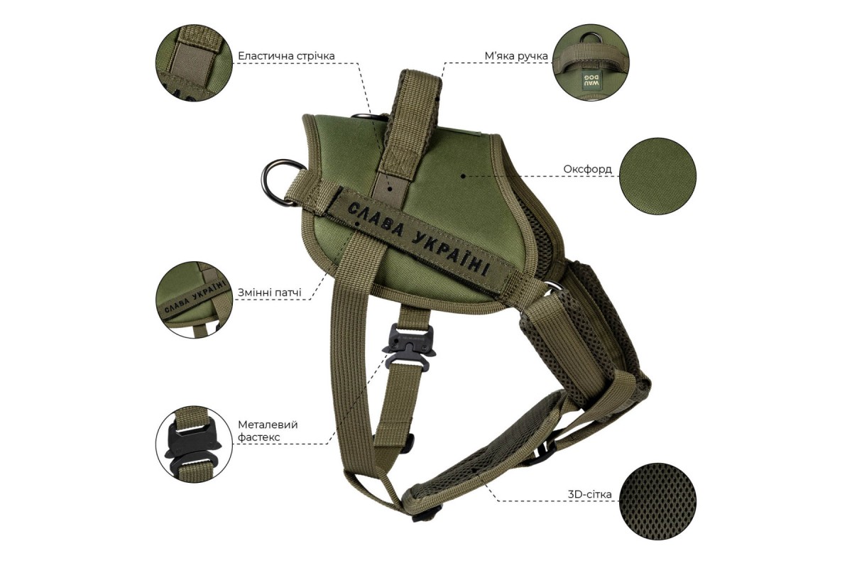 Шлея для службових собак WAUDOG PRO, металевий фастекс, хакі
