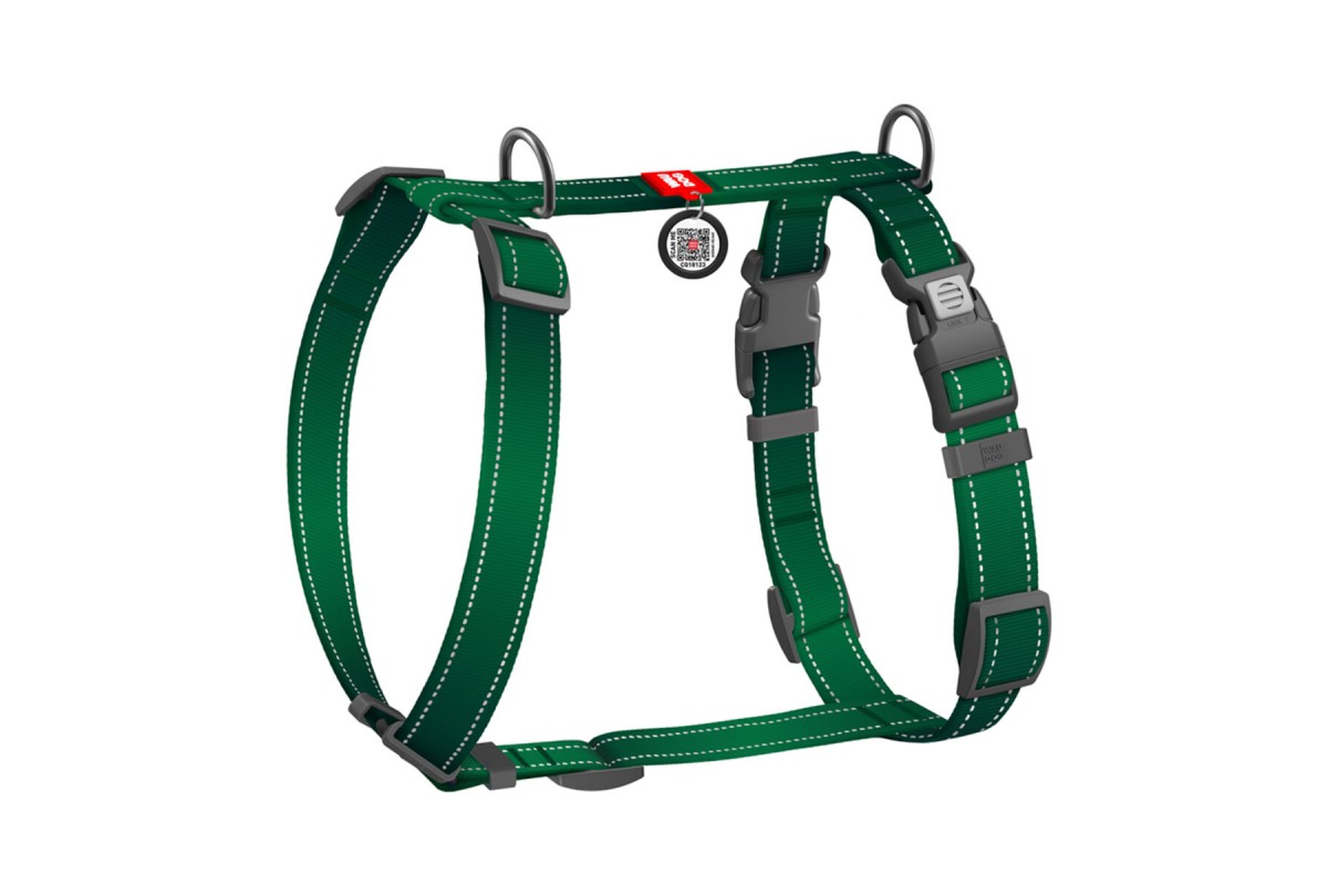 Шлея для собак H-подібна WAUDOG Nylon Mono QR світловід. розмір L Ш 25мм А 51-85cм В 60-85cм зелений