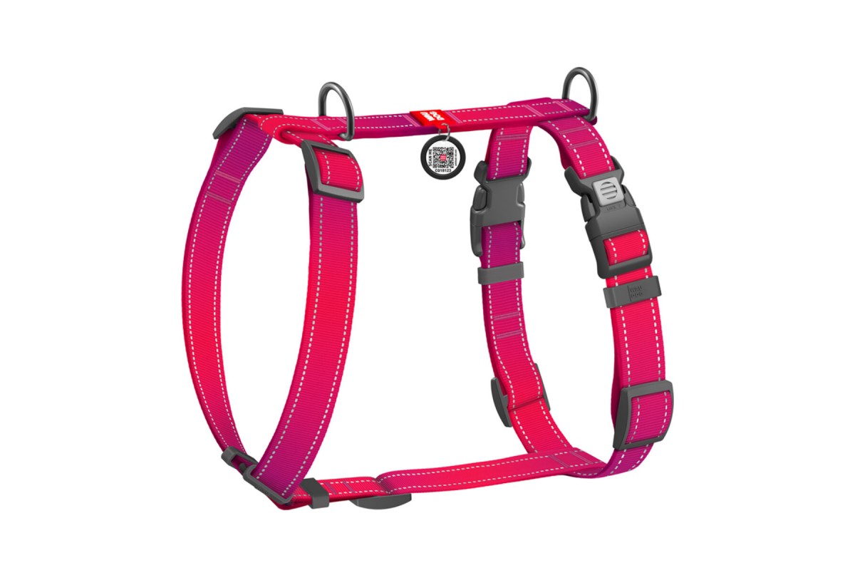 Шлея для собак H-подібна WAUDOG Nylon Mono QR світловід. розмір М Ш 20мм А 38-60cм В 45-60cм рожевий
