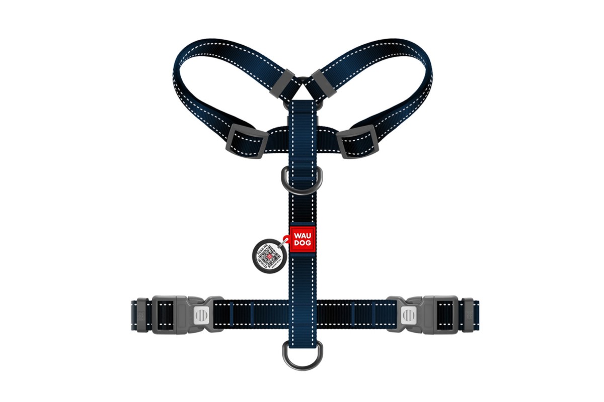 Шлея для собак H-подібна WAUDOG Nylon Mono QR світловід. розмір S Ш 15мм A 30-45cм B 35-45cм чорний