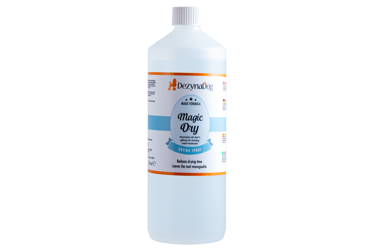 Спрей Dezynadog Magic Dry, нейтралізує здатність волосся утримувати молекули води, прискорює процес сушіння, солодкий фруктовий аромат, 1 л