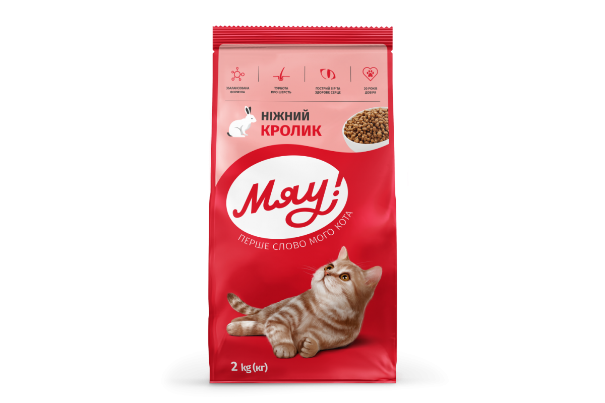 Сухий корм Мяу! для дорослих котів, ніжний кролик, 2 кг