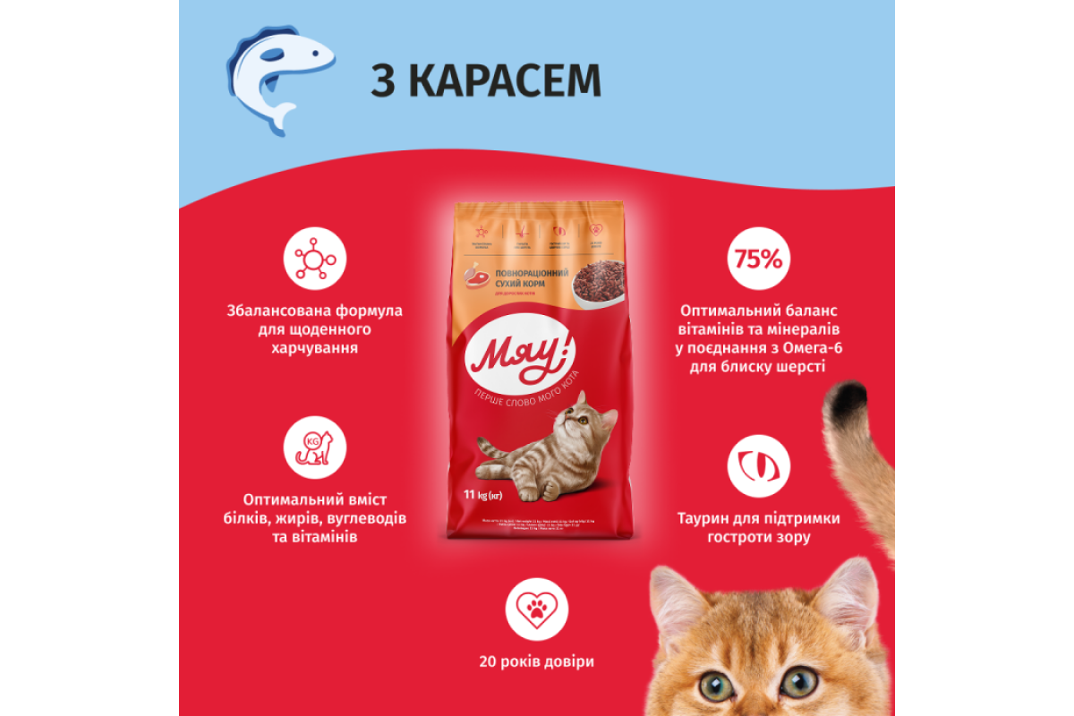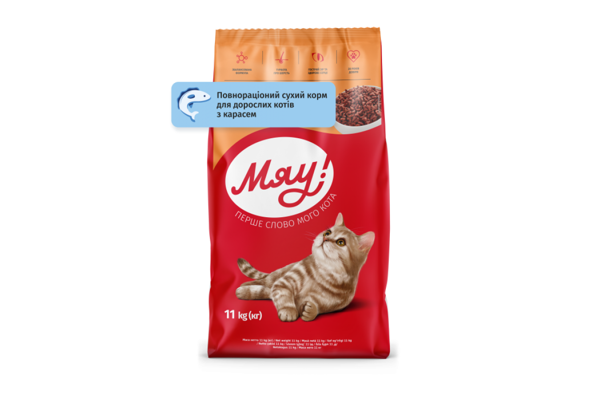 Сухий корм Мяу! для дорослих котів, карась, 11 кг