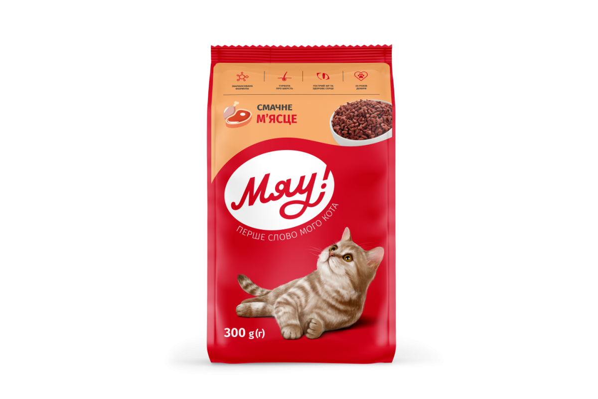 Сухий корм Мяу! для дорослих котів, смачне м'ясце, 300 г