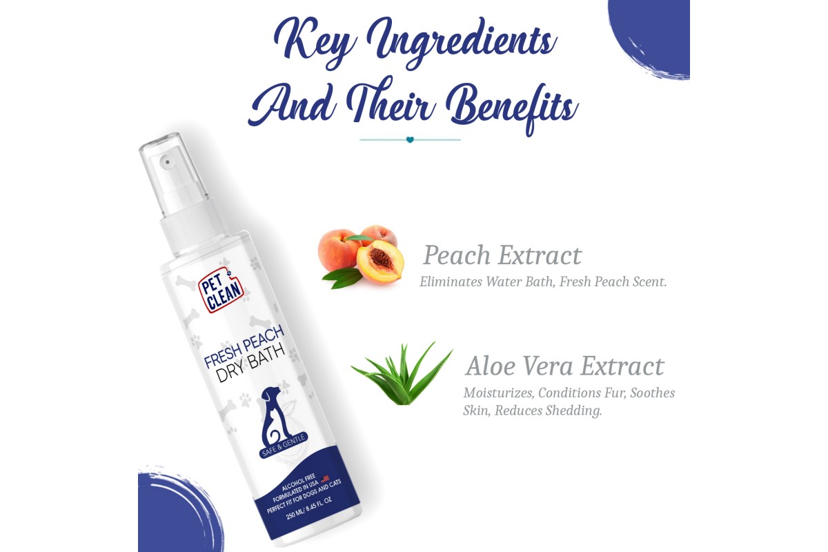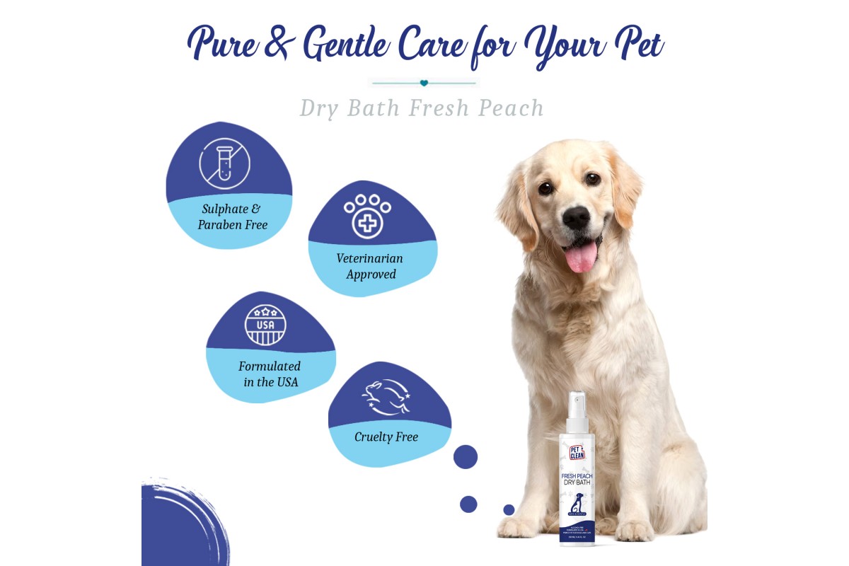 Сухий шампунь Pet Clean DRY BATH-FRESH PEACH для домашніх тварин з ароматом персику 250мл