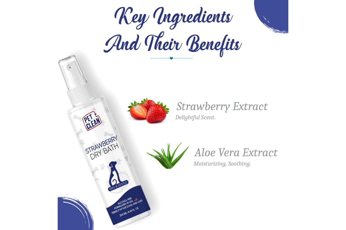 Сухий шампунь Pet Clean DRY BATH-STRAWBERRY для домашніх тварин з ароматом полуниці 250мл