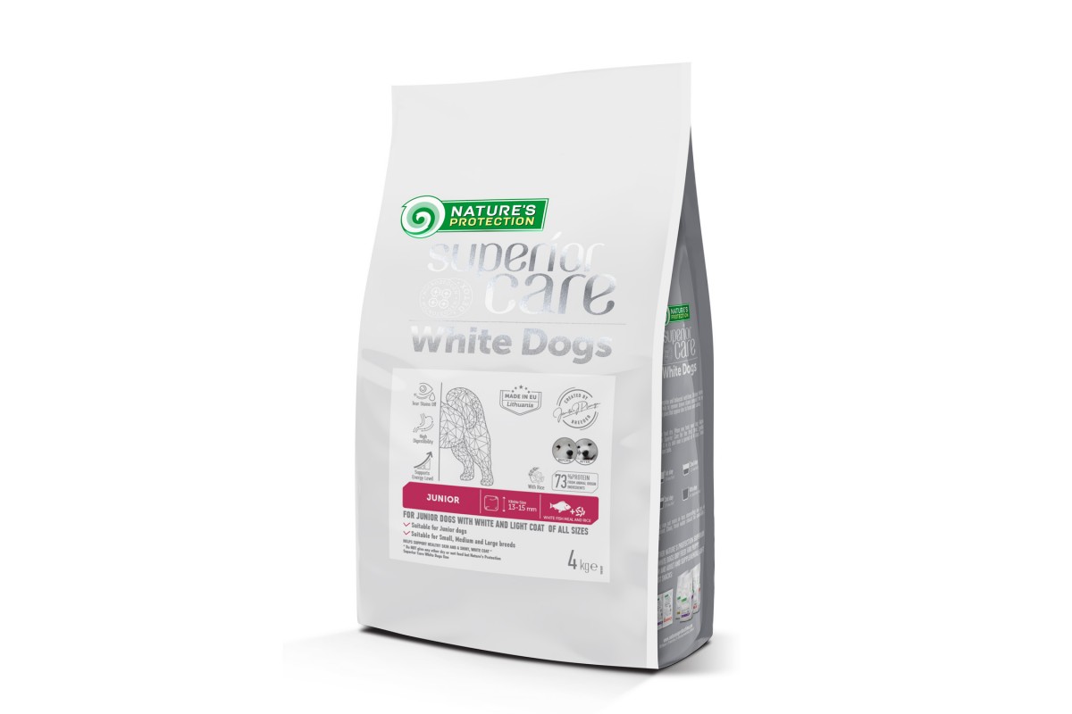 Сухий беззерновий корм Nature's Protection Superior care, для юніорів усіх розмірів з білою шерстю, біла риба, 4 кг