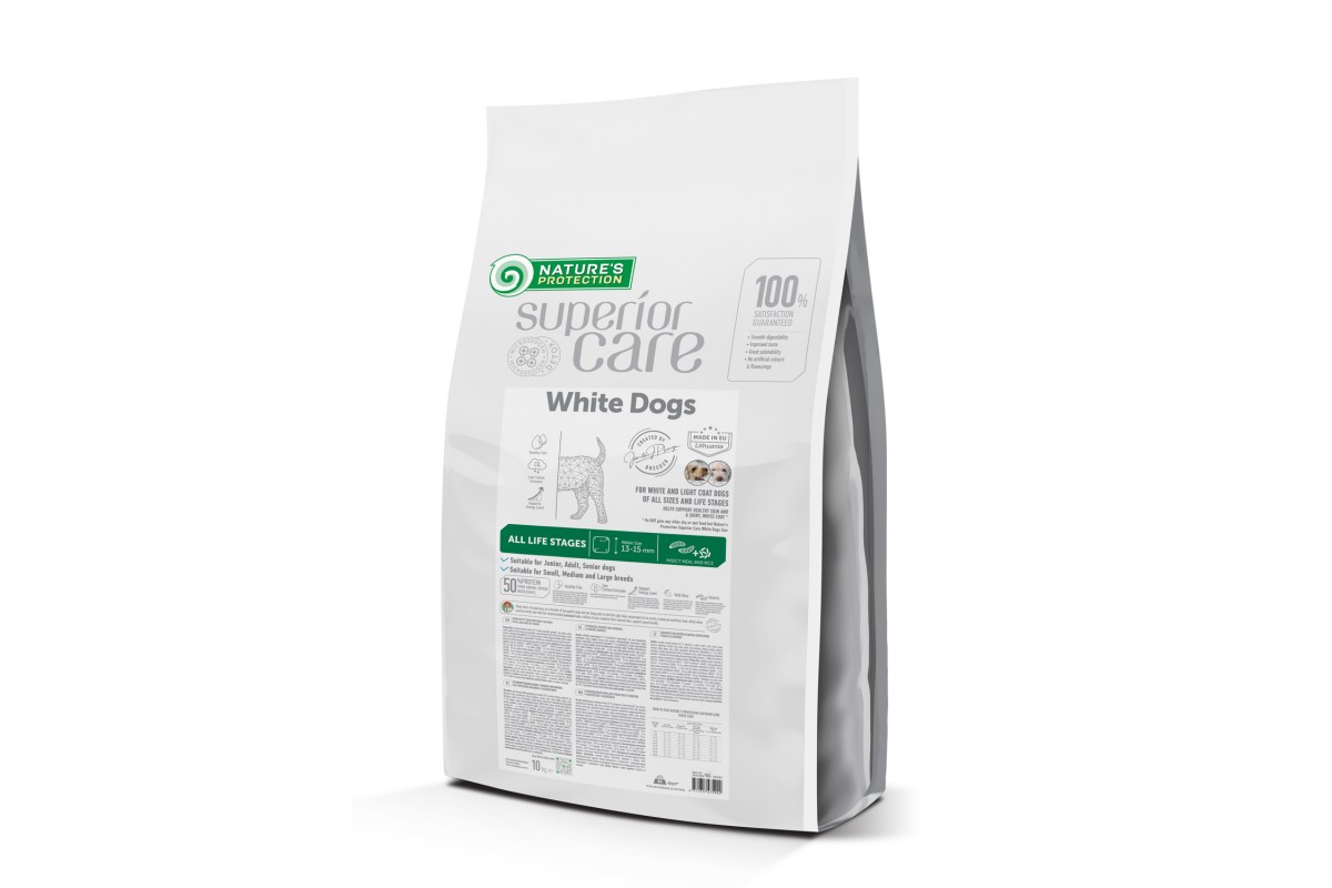 Сухий беззерновий корм Nature's Protection Superior care, для собак усіх розмірів та стадій розвитку з білою шерстю, білок комах, 10 кг