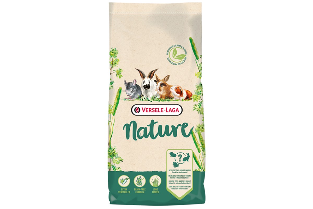 В основі – суміш тимофіївки та інших корисних трав, спеціально вирощених та відібраних для створення раціону Nature. Без люцерни. На 20% збільшено кількість клітковини та на 20% знижено вміст крохмалю для здоров'я травної системи та зубів гризунів. Більше необроблених, натуральних компонентів. У складі немає пресованих гранул, тільки хрумкі екструдовані гранули з волокнистою структурою з понад 10 спеціально відібраних корисних трав. Додатково до корму додано сіно тимофіївки.