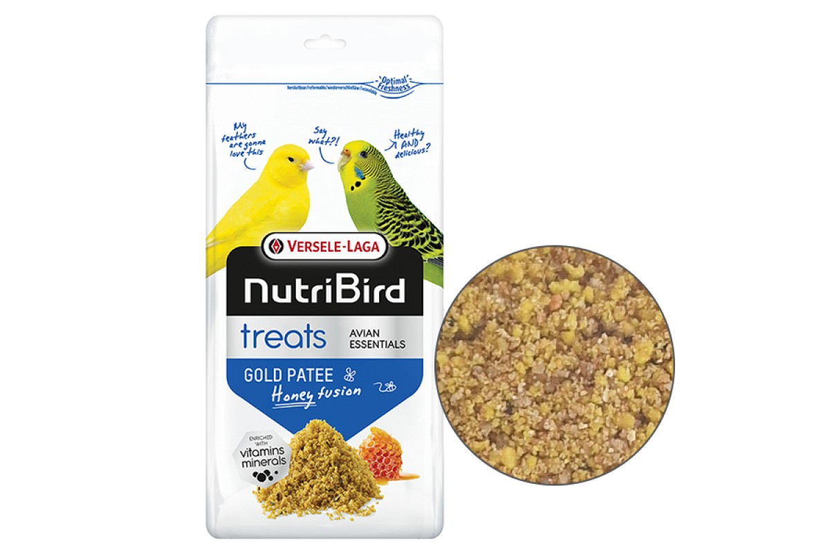NutriBird Gold Patee Honey Fusion – це поживний додатковий вологий вологий яєчний корм з медом для всіх видів птахів, розроблений з урахуванням їхніх потреб під час линьки, розмноження або відновлення.