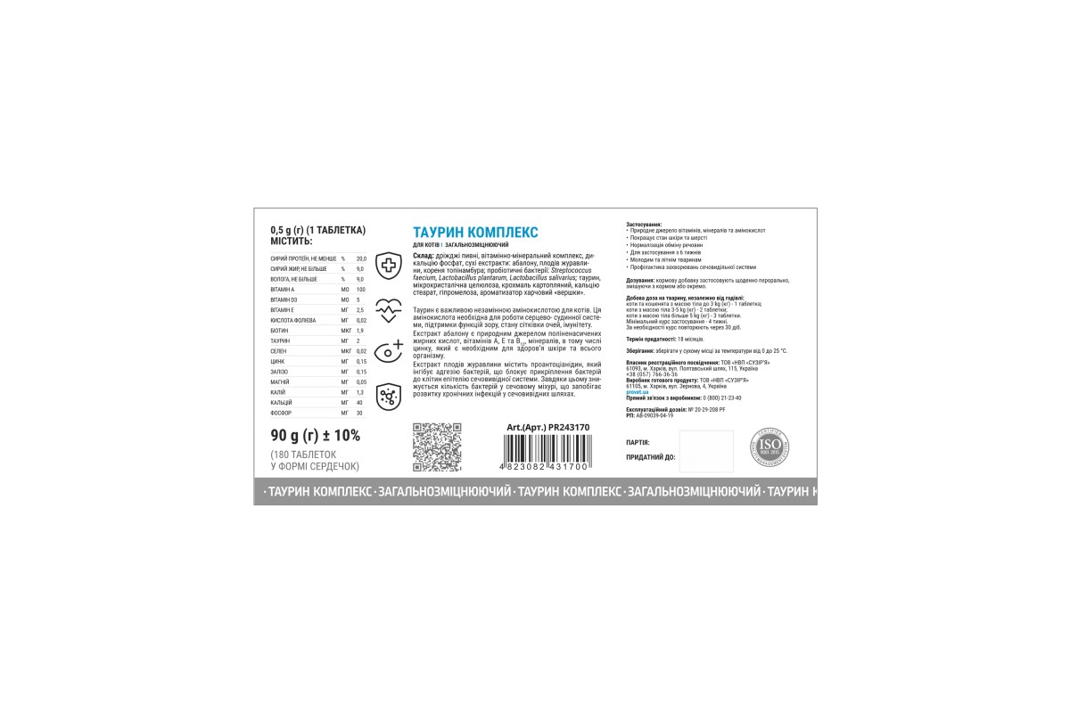 Вітаміни PROVET PROFILINE для котів ТАУРИН КОМПЛЕКС, 180 таб