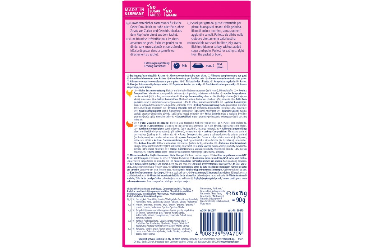 Желе Vitakraft Jelly Lovers MP, для котів, куркою та індичкою, 6*15 г