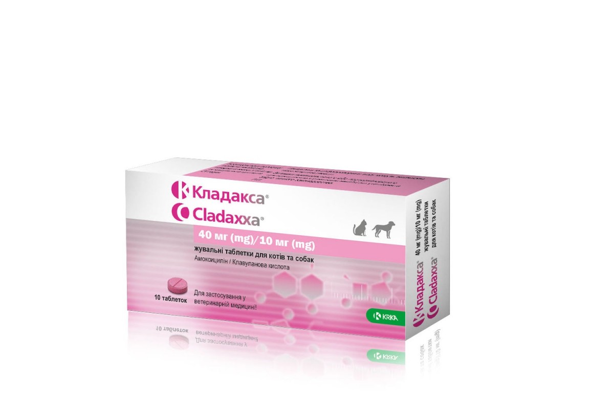 Жувальні таблетки KRKA Cladaxxa для собак та котів, лікування інфекційних захворювань бактеріальної етіології, 10 табл
